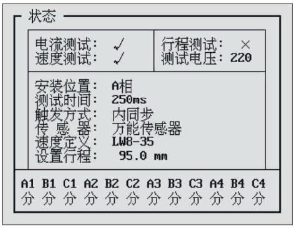 答:选择【测试】-【合闸测试】,仪器液晶显示屏的最下方有12断口的实时状态显示。屏幕显示如下图: