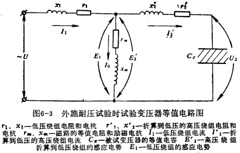 为了便于比较,根据变压器原理,可以将试验变压器在耐压试验时副成图6-3的等值电路图。