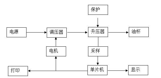 油试验的交流高压电压从调压器的输出经过升压而得,硬件保护电路可以识别油样是否被击穿,油样击穿时保护电路通过硬件自动截断升压器的输入,同时单片机控制步进电机使调压器返回到零位。调压器的升降过程和仪器的升压速度都是由单片机根据具体的试验程序控制步进电机的旋转来实现的。在整个升压过程中一起显示油杯中电极之间所承受的电压值,单位为kV,并把发生击穿前瞬间的电压值作为试油单次试验的击穿电压。