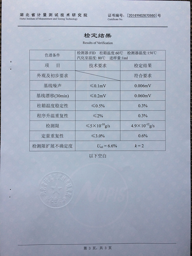 | FID检测器检出限 | ≤3×10-12g/s(十六烷) |