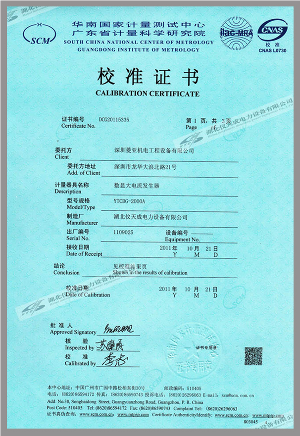 上一篇:YTC8750B互感器伏安变比极性综合测试仪鉴定证书 下一篇:YTCZG-120kV/2mA直流高压发生器鉴定证书